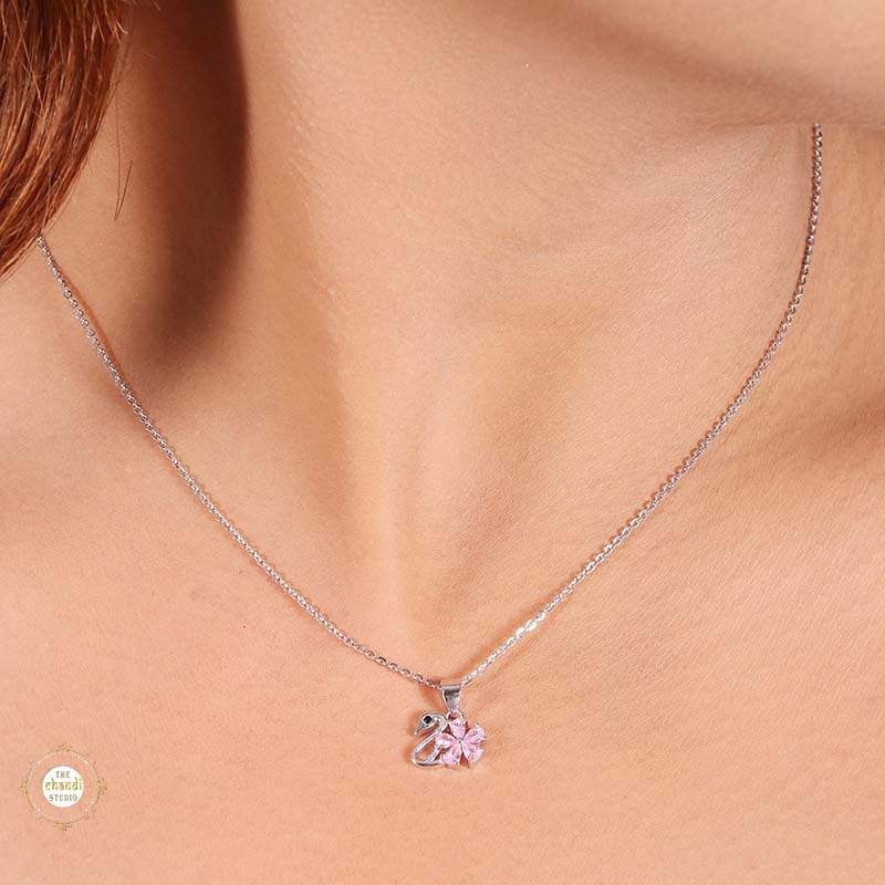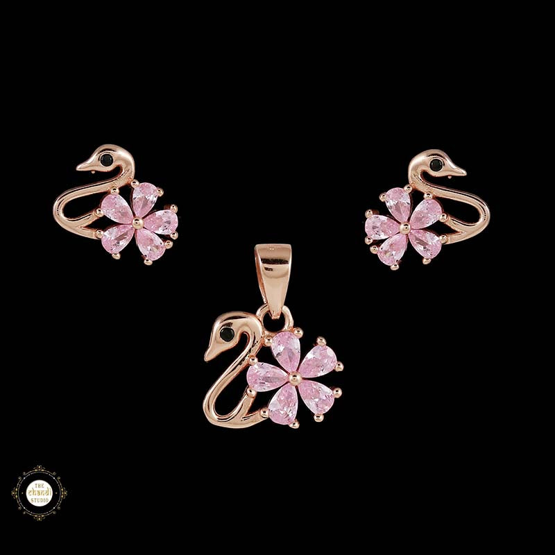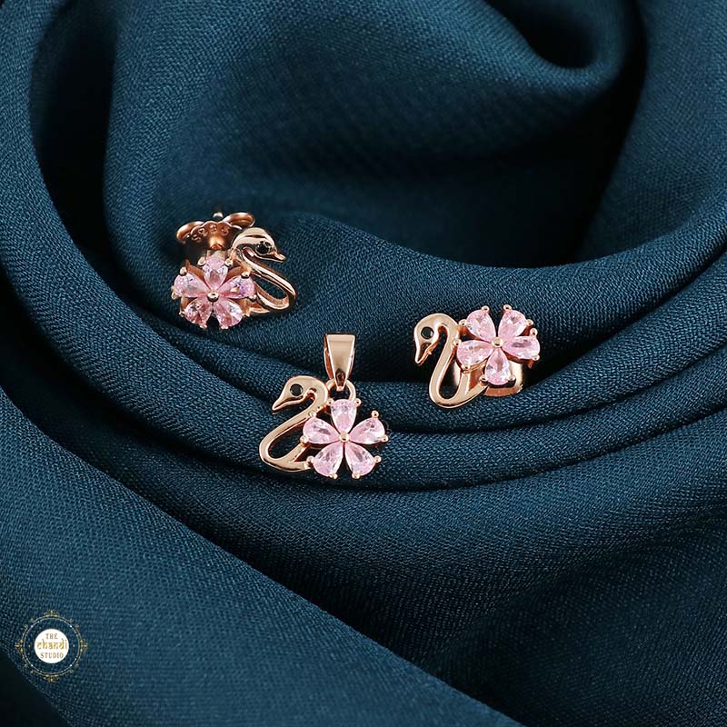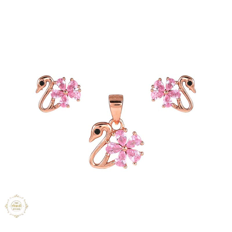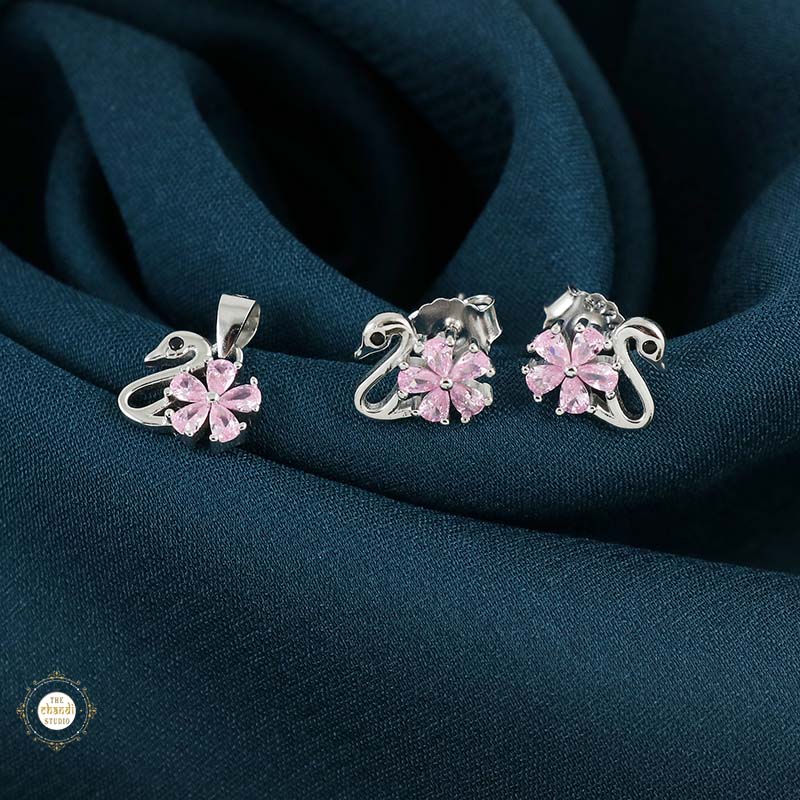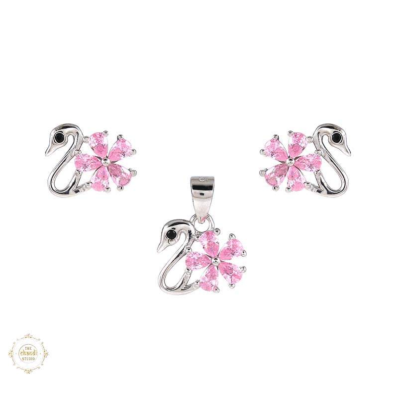 Sterling Silver Sparkling Silver Swan Pendent Set