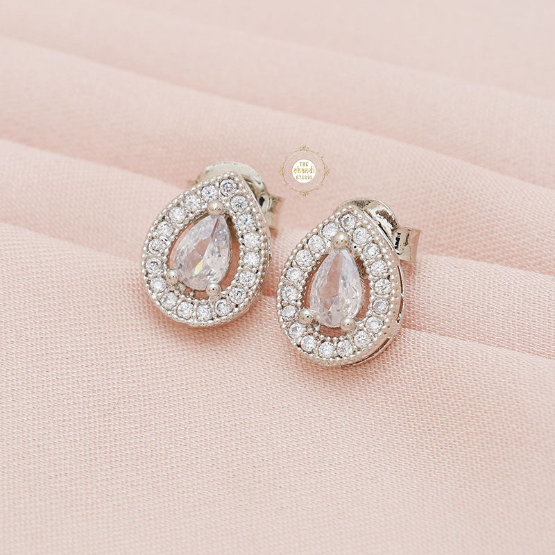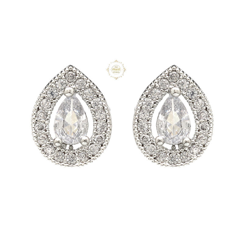 These exquisite studs feature a Tilak design adorned with sparkling zircons, creating a dazzling and eye-catching look that will capture hearts everywhere. * Nickle free Rhodium Polish for better finish
