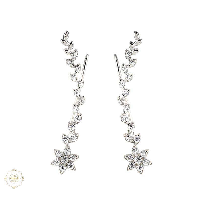 Sterling Silver Sparkling Silver Tiny Tulip Hoop Earring