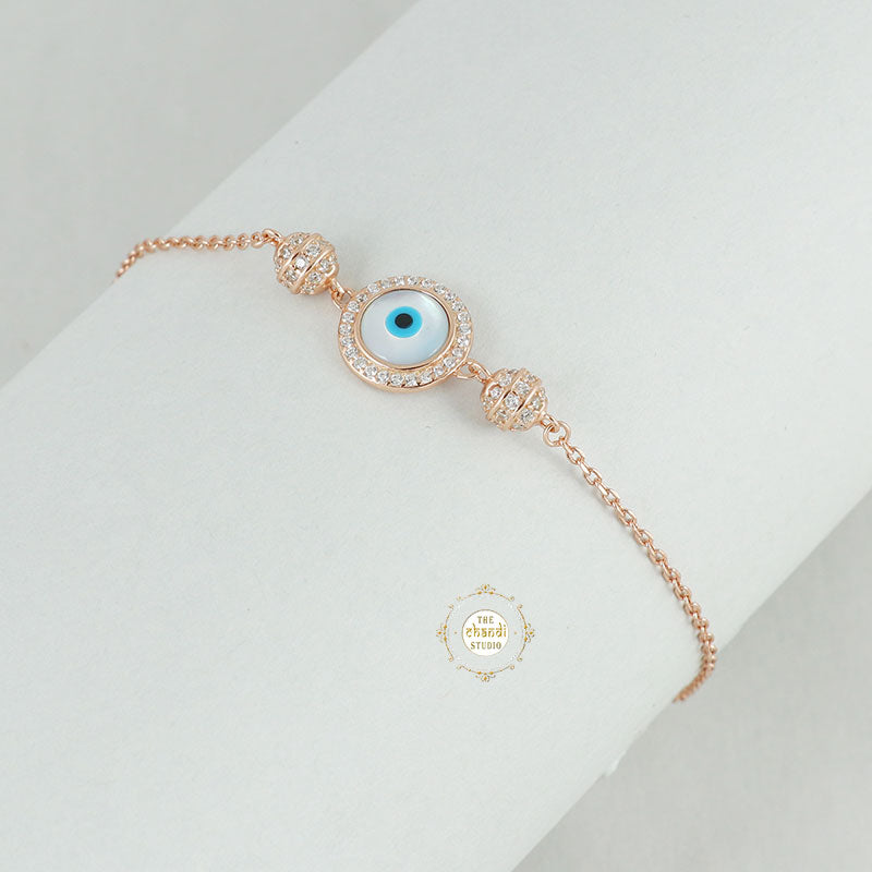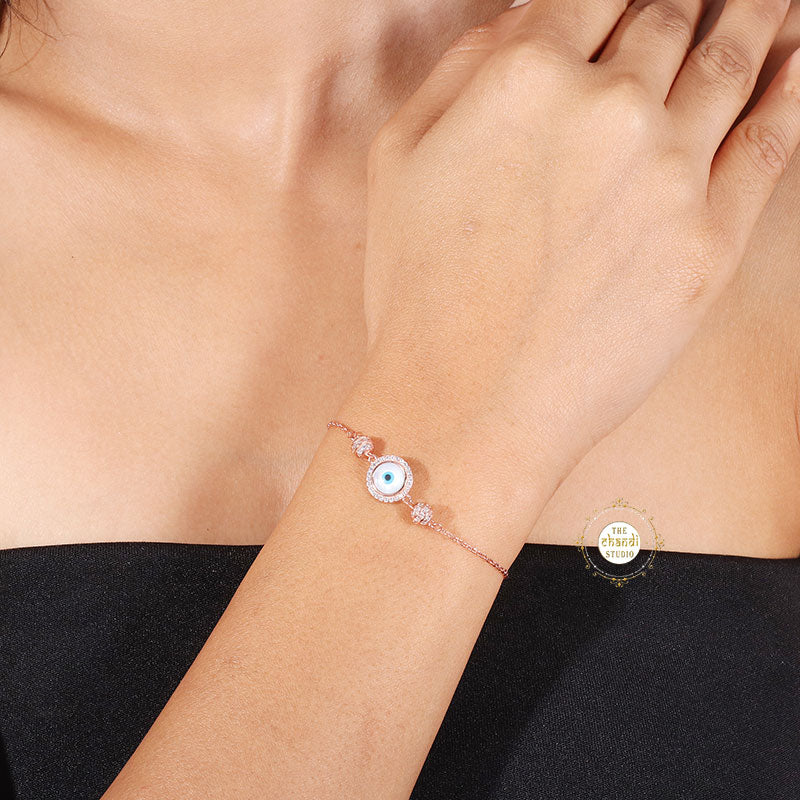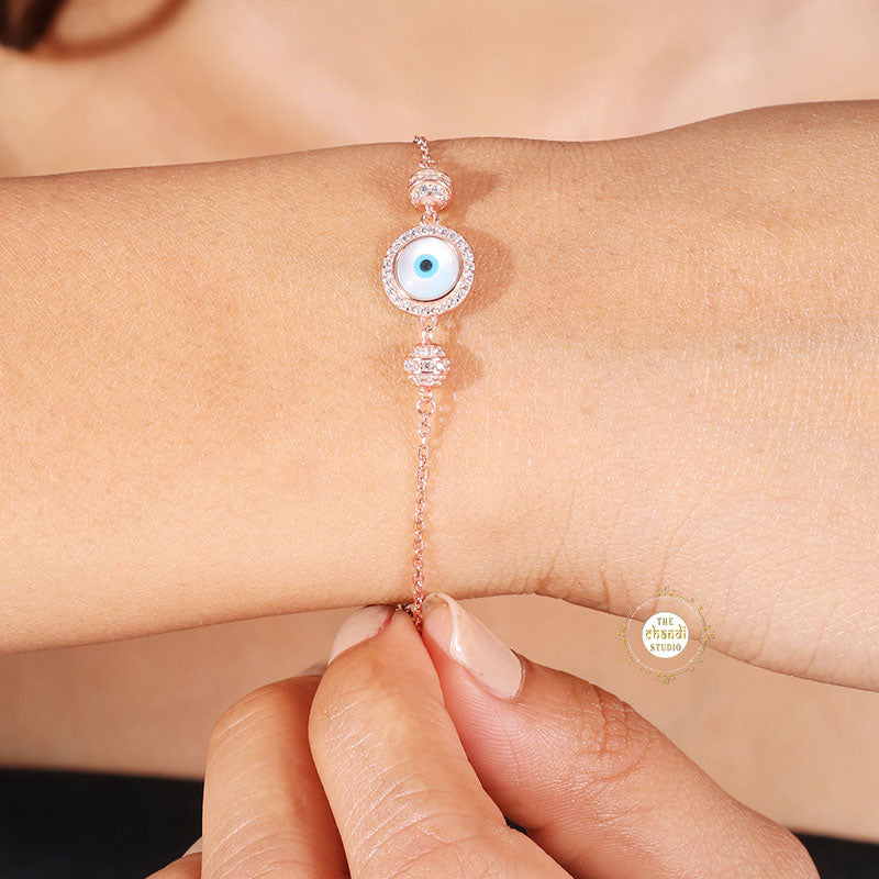 Unveil eternal elegance with our Sparkling Silver Treasure Evil Eye Bracelet, a timeless piece from our blingy silver jewellery collection. Adorned with shimmering zircon in an infinity symbol design, this bracelet symbolizes everlasting love and connection. * SIZE ADJUSTABLE * Nickle free Rhodium Polish for better finish *