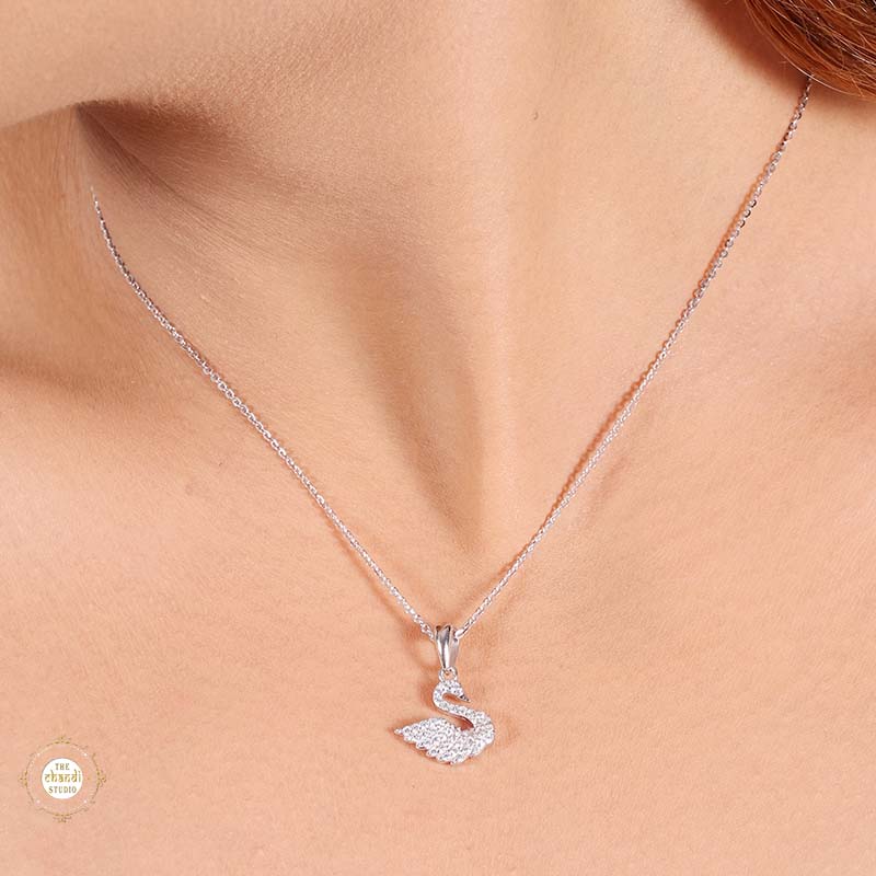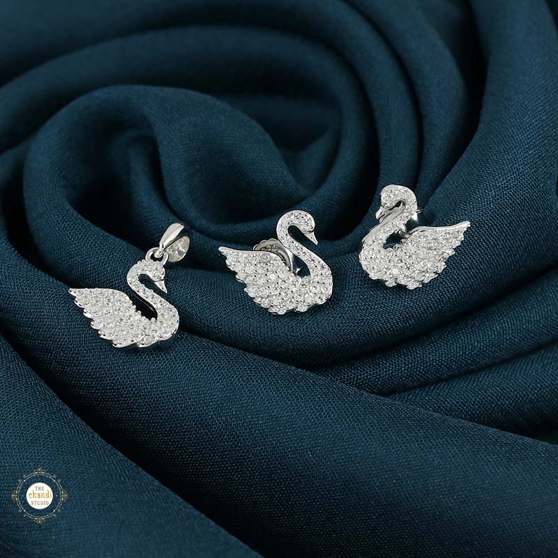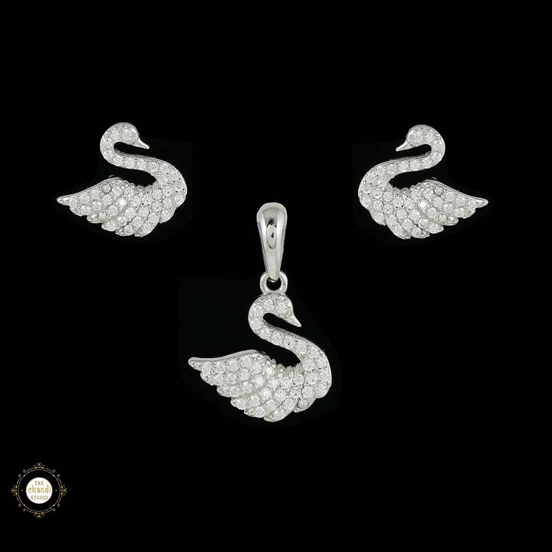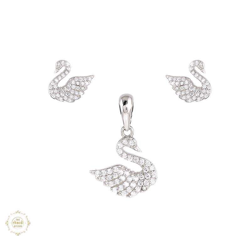 Sterling Silver Sparkling Silver Twinkle Swan Pendant Set