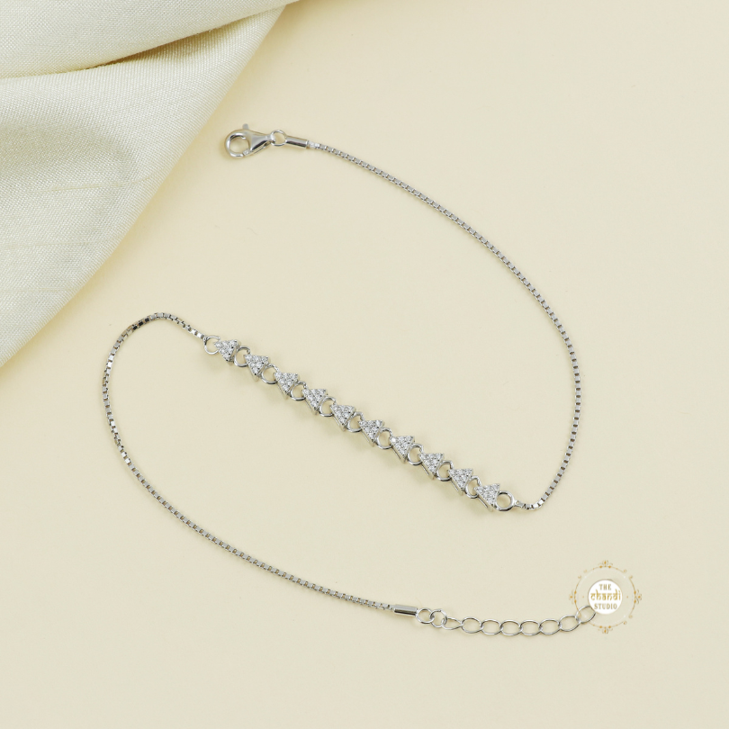 Sparkling Silver Twinkle Triangle Anklet (Piece)