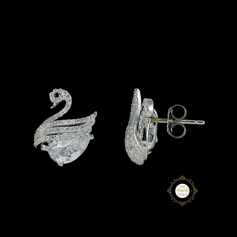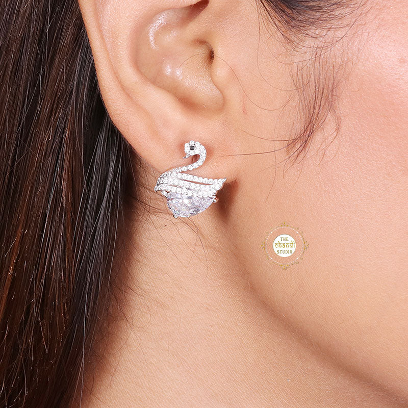 Embrace elegance with Sparkling Silver Swan Beauty Stud Earrings. Crafted in sterling silver, these dazzling twin butterflies symbolize transformation and grace, adding a whimsical charm to your everyday or special occasion look.