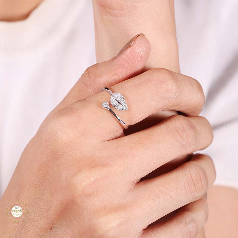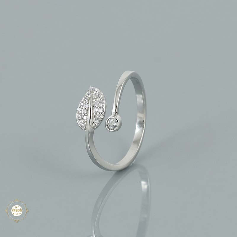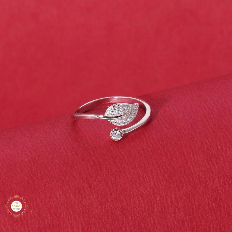 Sterling Silver Sparkling  Whispering Leaf Ring