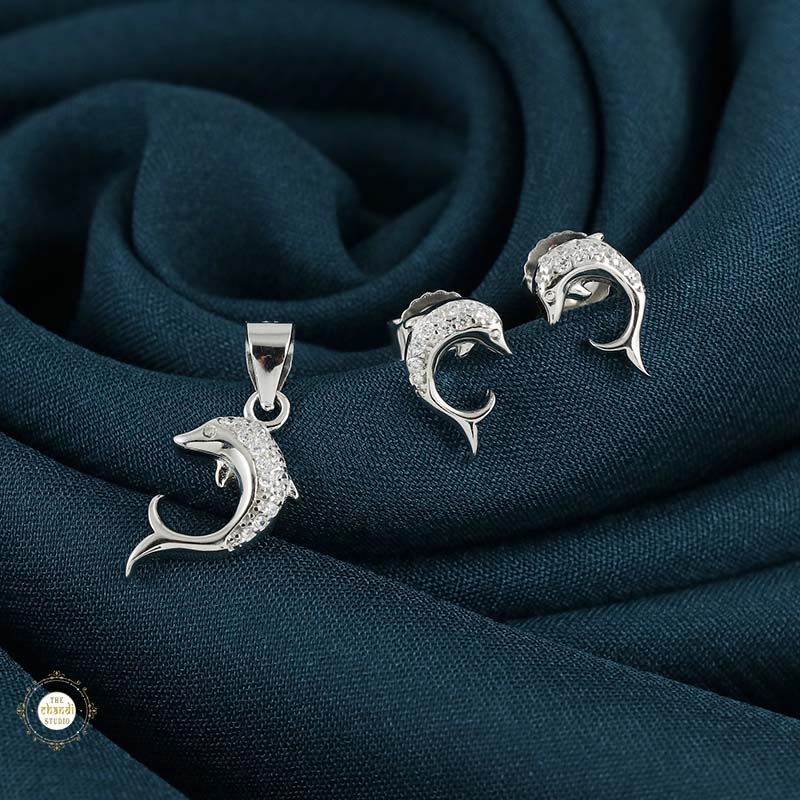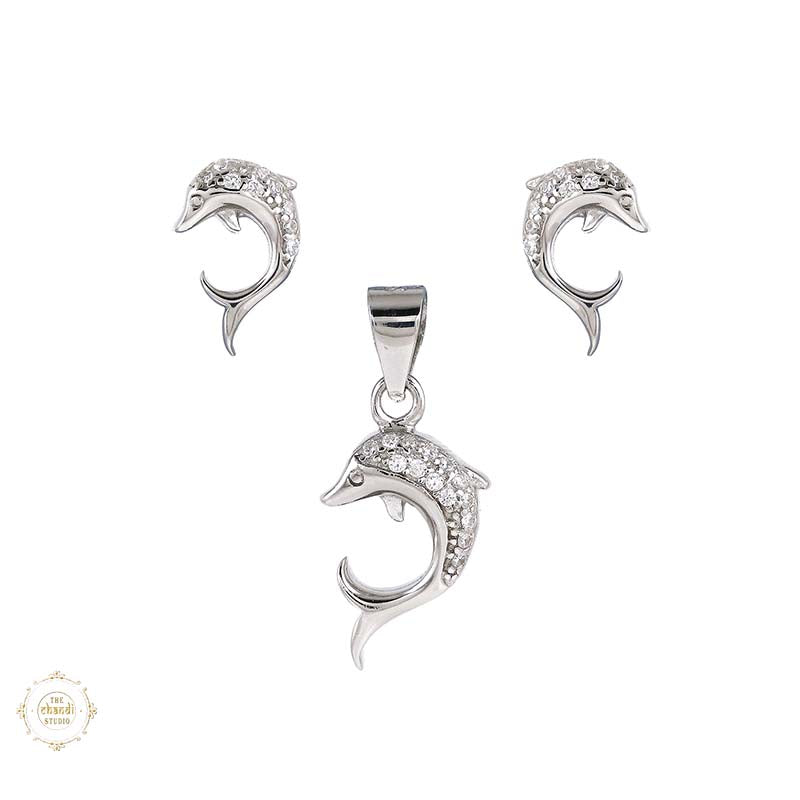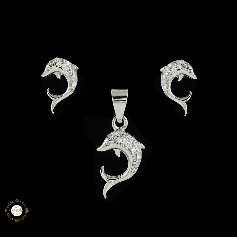 Sterling Silver Sparkling Silver Sparkle Fish Pendant Set