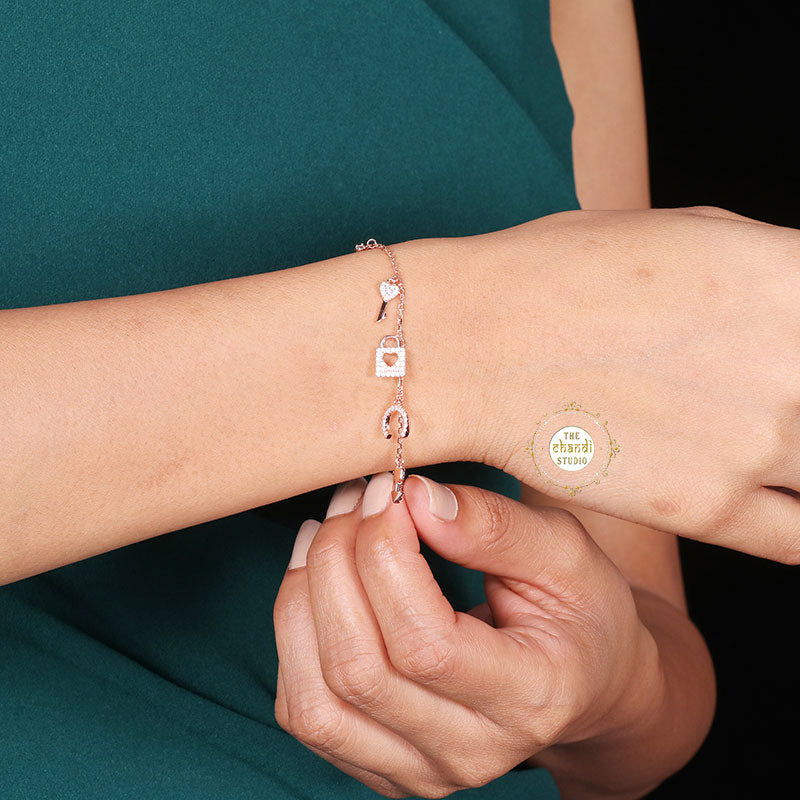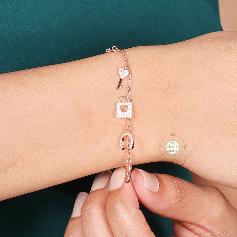 Unveil eternal elegance with our Sparkling Silver Heart Lock Bracelet , a timeless piece from our blingy silver jewellery collection. Adorned with shimmering zircon in an infinity symbol design, this bracelet symbolizes everlasting love and connection. * SIZE ADJUSTABLE * Nickle free Rhodium Polish for better finish