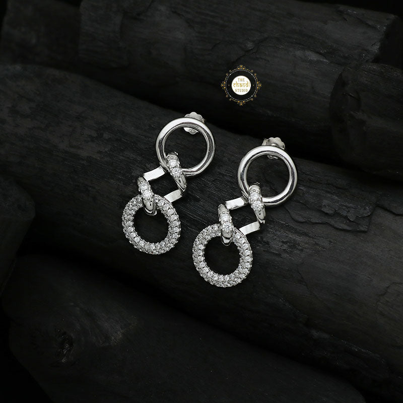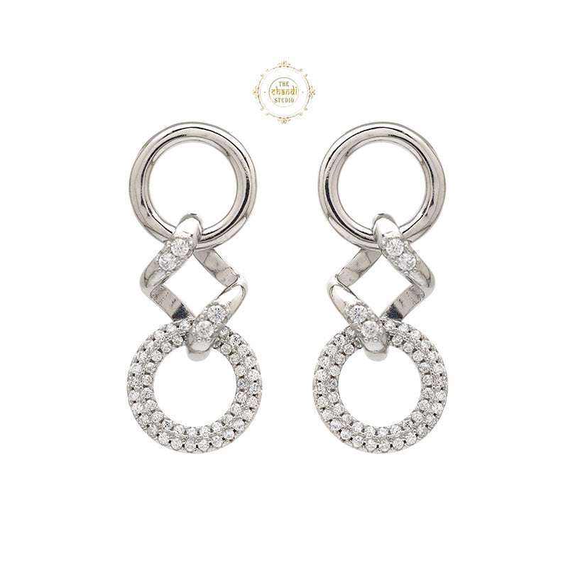 These sterling silver earrings are adorned with brilliantly cut sparkling Zircon stones. Manifested on a white-toned base, these earrings are perfect to enhance the beauty of young and adults who are working on self-love and self-expression. The pure white hue resonates with the peace of mind that your subconscious mind is attracting. The grace of these earrings with a unique clustered design makes them your instant favorite and insta-worthy pieces. Show off your regal essence with this beauty that is unequalled with the other earrings that you own. Pair them with any attire and be ready for any festive occasion in a jiffy. MATERIAL – STERLING SILVER 92.5