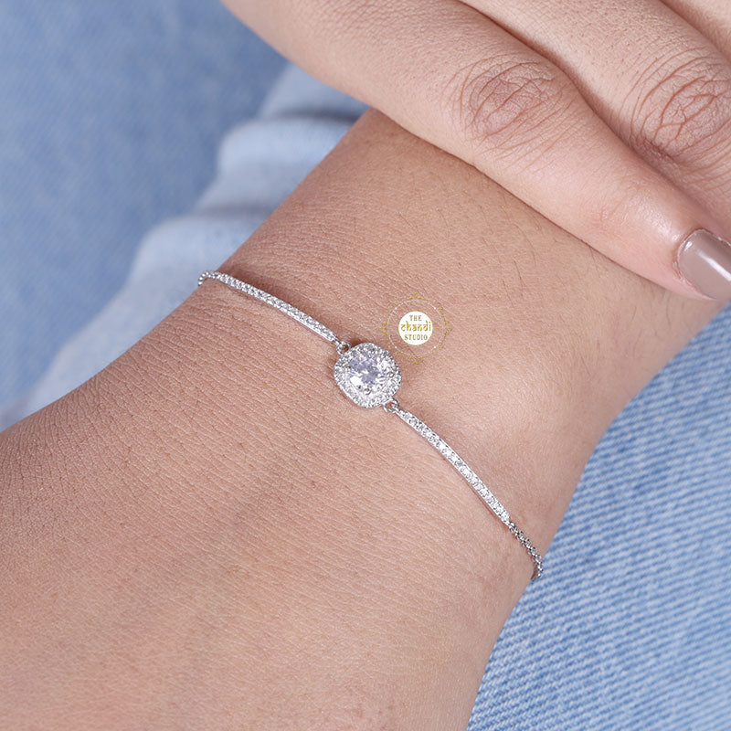 Experience timeless beauty with our Sparkling Treasure Classic Bracelet, a must-have from our blingy silver jewellery collection. Adorned with sparkling zircon and featuring a classic design, this bracelet exudes elegance and charm. * SIZE ADJUSTABLE * Nickle free Rhodium Polish for better finish