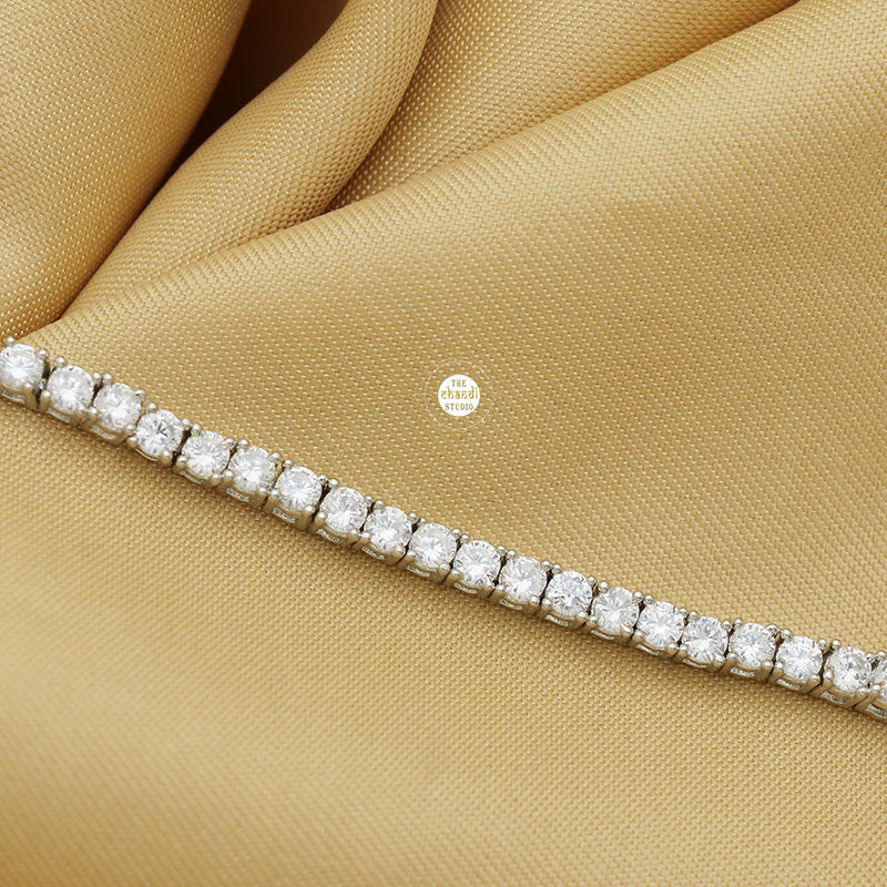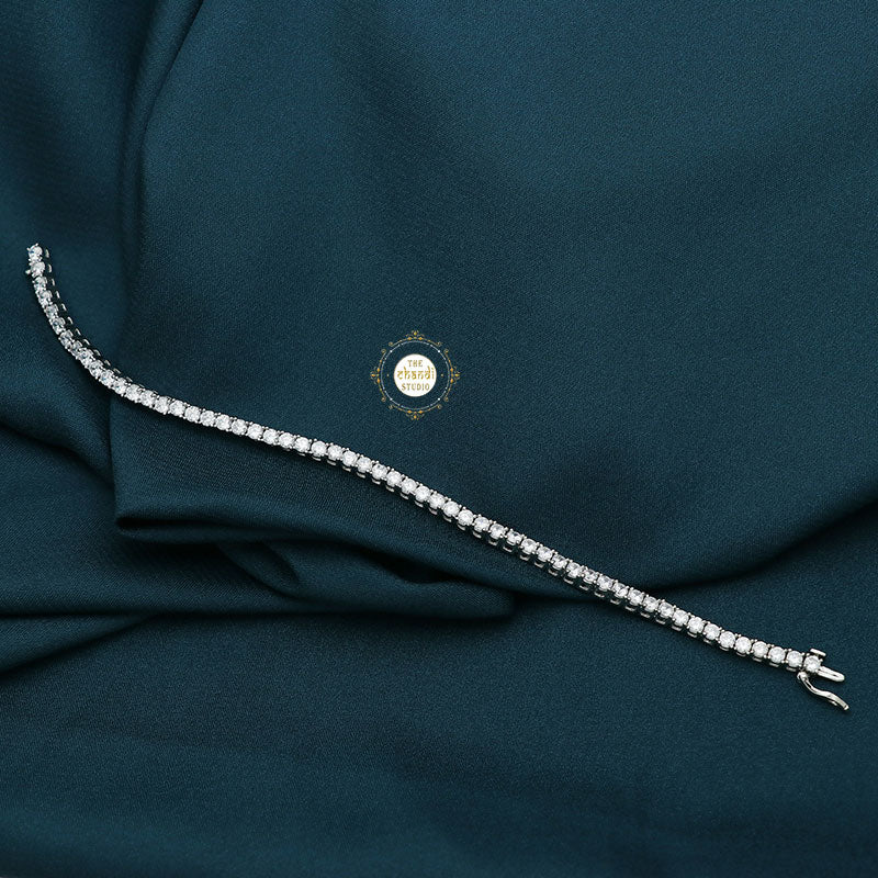Sparkling Treasure Delicate Desire Bracelet This sterling silver bracelet is adorned with brilliantly cut sparkling Zircon stones. Manifested on a white toned band, this bracelet is perfect to solidify a union in love for young adults or women who have just started to work on self-love. This pure white hue resonates with the peace of mind that your subconscious mind is attracting The grace of the band bracelet with a unique clustered design on top makes it your instant favourite and insta-worthy piece. Show off your regal essence with this beauty that is unequalled with the other bracelets that you own. Team it up with any attire and be festive ready in a jiffy. Material- 92.5% Sterling Silver Nickle free Rhodium Polish for better finish