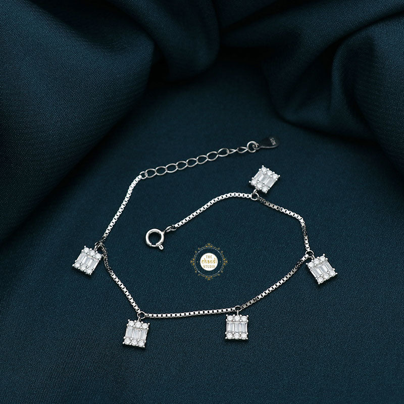 Sparkling Treasure Delicate Desire Bracelet This sterling silver bracelet is adorned with brilliantly cut sparkling Zircon stones. Manifested on a white toned band, this bracelet is perfect to solidify a union in love for young adults or women who have just started to work on self-love. This pure white hue resonates with the peace of mind that your subconscious mind is attracting The grace of the band bracelet with a unique clustered design on top makes it your instant favourite and insta-worthy piece. Show off your regal essence with this beauty that is unequalled with the other bracelets that you own. Team it up with any attire and be festive ready in a jiffy. Material- 92.5% Sterling Silver Adjustable size Nickle free Rhodium Polish for better finish