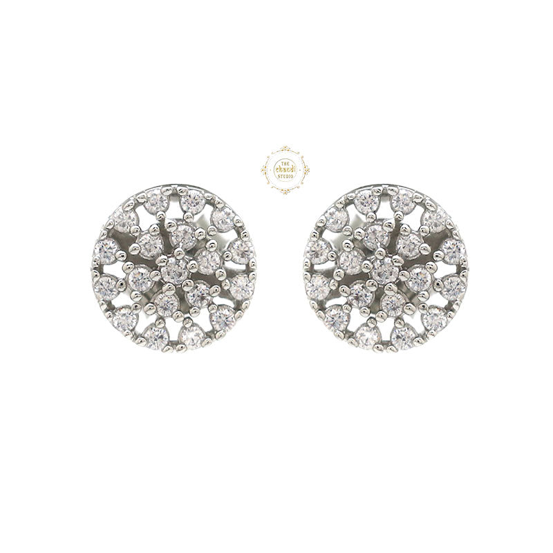 These sterling silver earrings are adorned with brilliantly cut sparkling Zircon stones. Manifested on a white-toned base, these earrings are perfect to enhance the beauty of young and adults who are working on self-love and self-expression. The pure white hue resonates with the peace of mind that your subconscious mind is attracting. The grace of these earrings with a unique clustered design makes them your instant favorite and insta-worthy pieces. Show off your regal essence with this beauty that is unequalled with the other earrings that you own. Pair them with any attire and be ready for any festive occasion in a jiffy. MATERIAL – STERLING SILVER 92.5