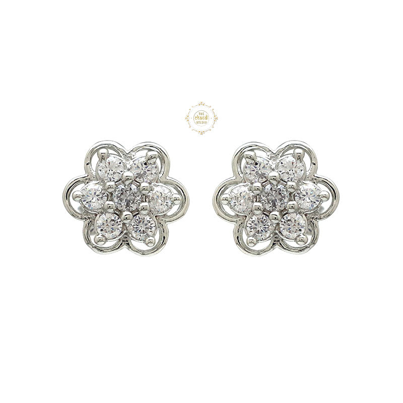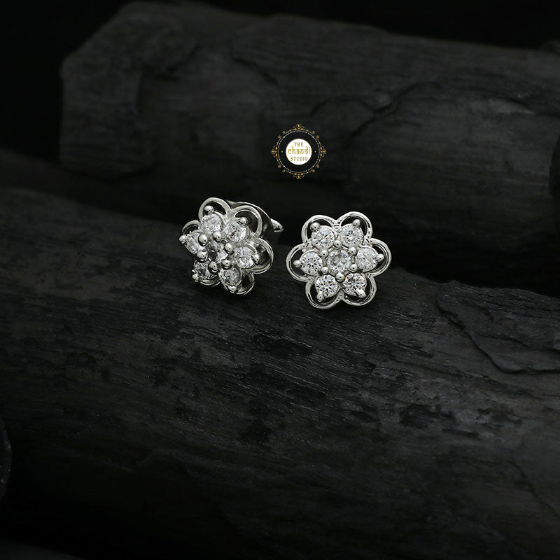 These sterling silver earrings are adorned with brilliantly cut sparkling Zircon stones. Manifested on a white-toned base, these earrings are perfect to enhance the beauty of young and adults who are working on self-love and self-expression. The pure white hue resonates with the peace of mind that your subconscious mind is attracting. The grace of these earrings with a unique clustered design makes them your instant favorite and insta-worthy pieces. Show off your regal essence with this beauty that is unequalled with the other earrings that you own. Pair them with any attire and be ready for any festive occasion in a jiffy. MATERIAL – STERLING SILVER 92.5