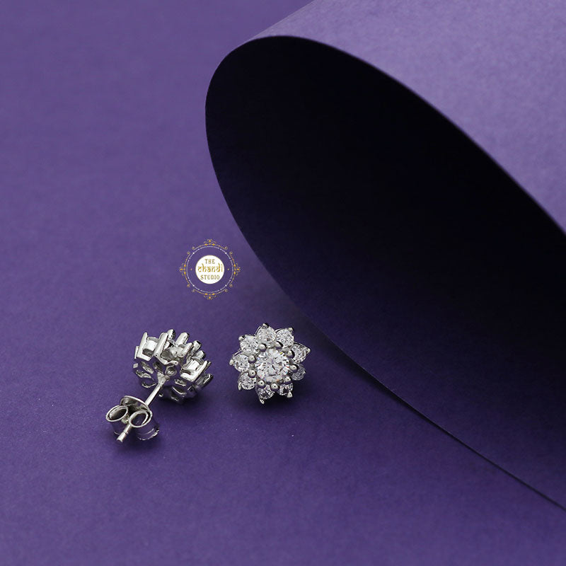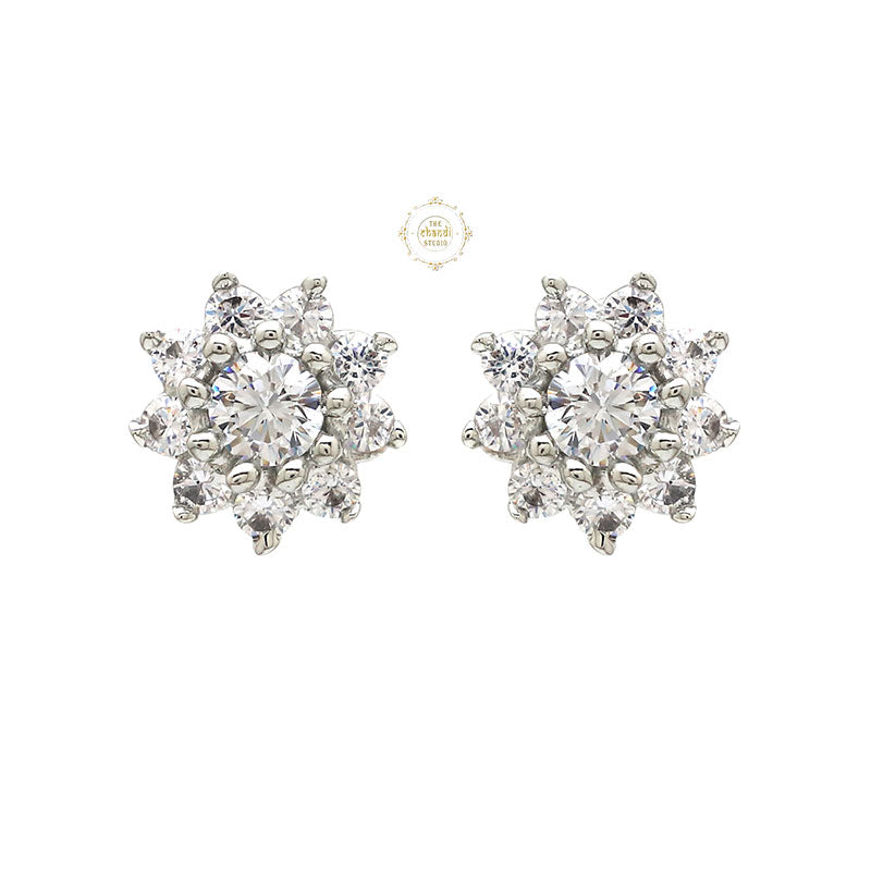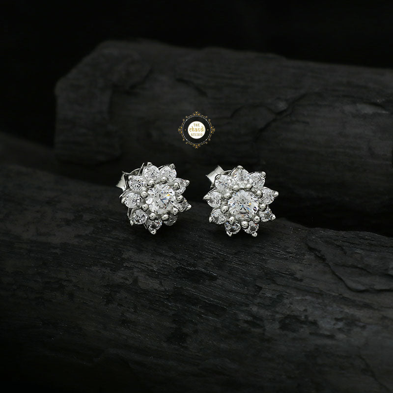 These sterling silver earrings are adorned with brilliantly cut sparkling Zircon stones. Manifested on a white-toned base, these earrings are perfect to enhance the beauty of young and adults who are working on self-love and self-expression. The pure white hue resonates with the peace of mind that your subconscious mind is attracting. The grace of these earrings with a unique clustered design makes them your instant favorite and insta-worthy pieces. Show off your regal essence with this beauty that is unequalled with the other earrings that you own. Pair them with any attire and be ready for any festive occasion in a jiffy. MATERIAL – STERLING SILVER 92.5