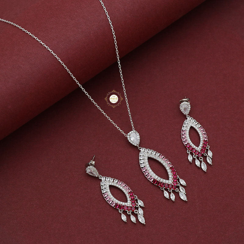 Sparkling Treasure Leaf Drop Necklace Set With Earring