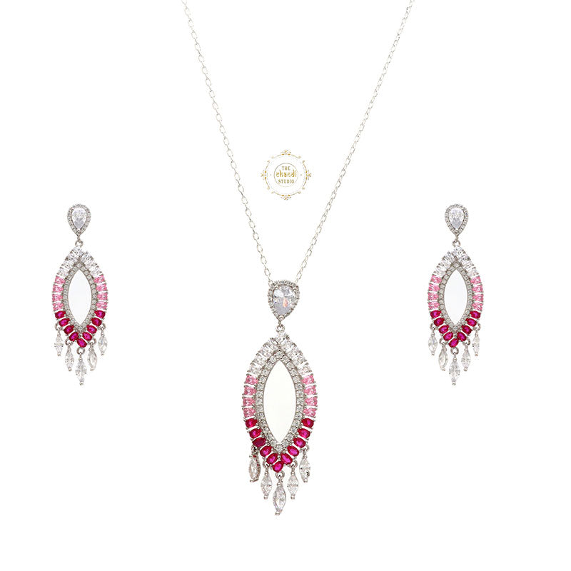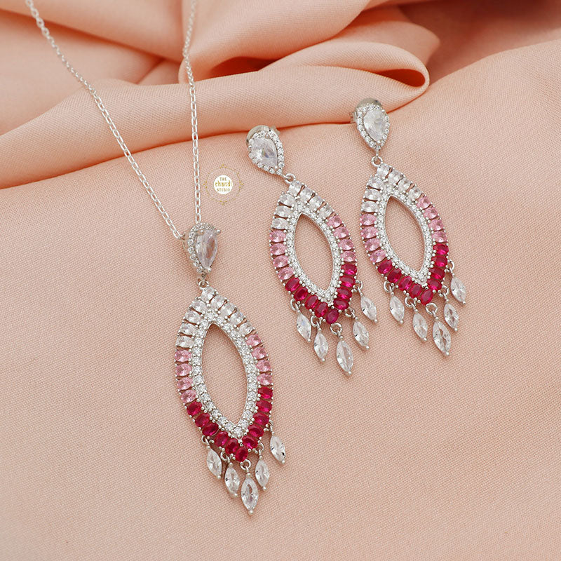The Sparkling Treasure Leaf Drop Necklace is an exquisite piece of jewelry that beautifully captures the essence of nature's elegance. Crafted with meticulous attention to detail, this necklace features delicate leaf-shaped pendants adorned with sparkling cubic zirconia stones.   The shimmering leaves gently dangle from a sterling silver chain, creating a graceful and enchanting look. This necklace is a timeless accessory that adds a touch of sophistication and nature-inspired charm to any outfit.   Whether worn for a special occasion or as an everyday adornment, it's a symbol of beauty and grace. Elevate your style with the Sparkling Treasure Leaf Drop Necklace.