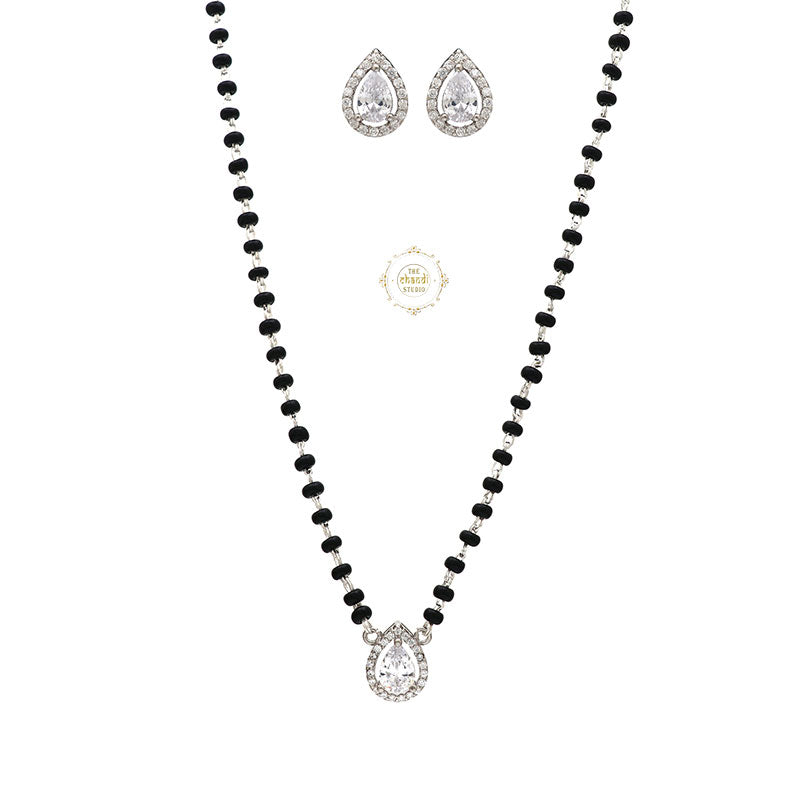 Sparkling Treasure Mangalsutra Pear Necklace Set With Earrings