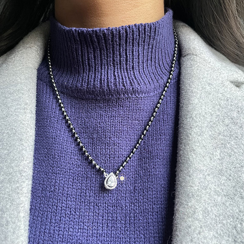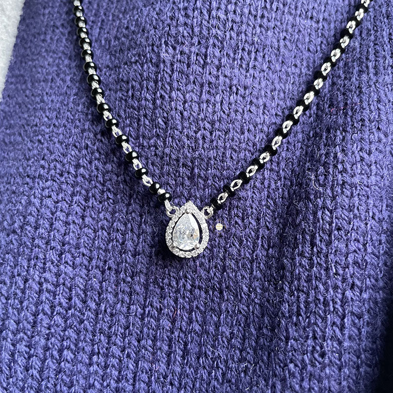 Elevate your post-marital elegance with the exquisite Sparkling Mangalsutra. This stunning neckpiece seamlessly complements any ensemble, ensuring you radiate regal charm at all times. Crafted to perfection, this Mangalsutra effortlessly combines trendiness with timeless style. Whether you’re clad in office formals, traditional attire, or attending a glamorous soirée, this versatile piece is your perfect companion. Designed to be worn around the clock, the Sparkling Mangalsutra is more than just a symbol of marital bliss; it’s a symbol of your enduring grace and fashion-forward sensibility. Add a touch of sparkle to every moment with this exquisite accessory. MATERIAL : STERLING SILVER 92.5