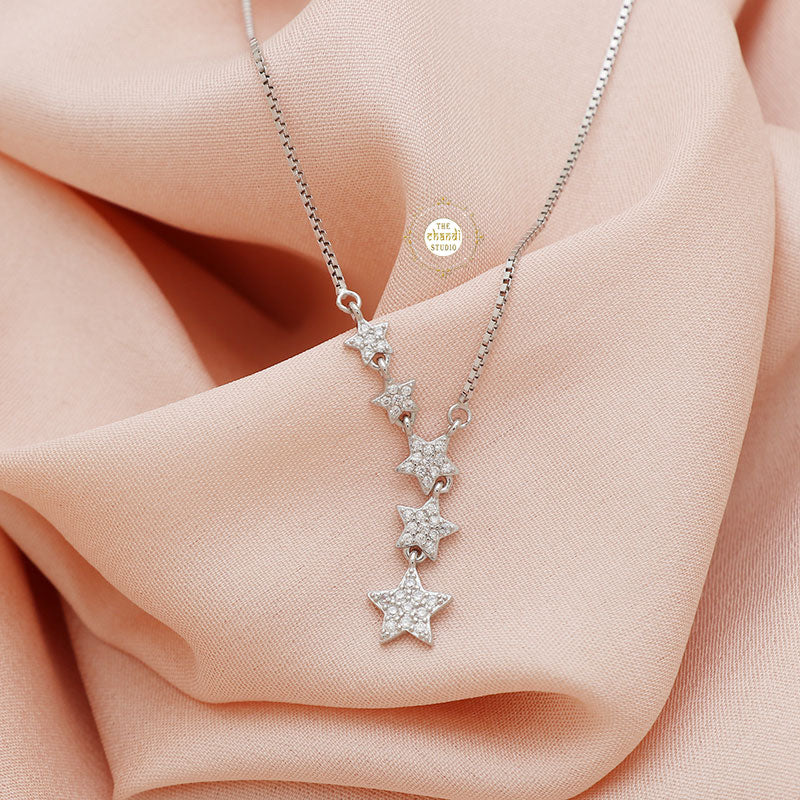 Introducing our exquisite new collection of sparkling necklaces crafted in sterling silver, each adorned with brilliantly cut Zircon stones. These necklaces are designed to celebrate love and self-love, making them a perfect choice for young adults and women embarking on their journeys of self-discovery. The pure white hue of these pieces resonates with the tranquility your subconscious mind seeks. The grace of each necklace, featuring a unique clustered design on top, is sure to capture your heart and become an instant favorite. These pieces are not only stunning but also worthy of any Instagram feed. Showcase your regal essence with this unparalleled beauty, setting it apart from any other necklaces you may own. Versatile enough to complement any attire, you’ll be ready for any festive occasion in the blink of an eye. MATERIAL : STERLING SILVER 92.5
