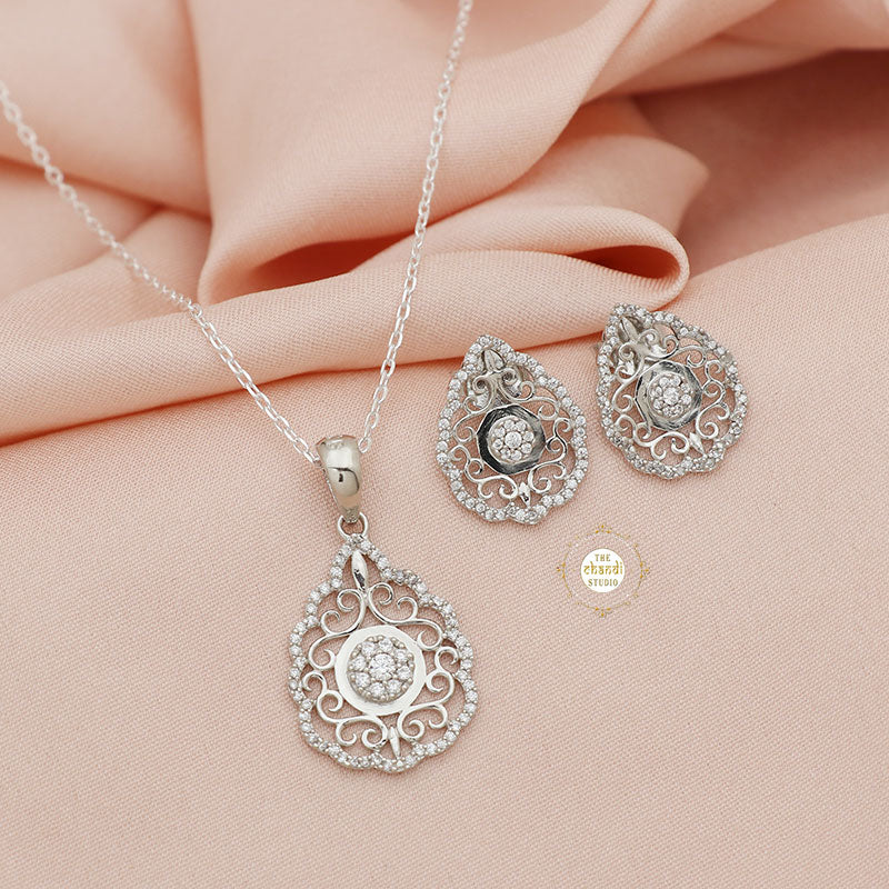 Introducing our exquisite new collection of sparkling necklaces crafted in sterling silver, each adorned with brilliantly cut Zircon stones. These necklaces are designed to celebrate love and self-love, making them a perfect choice for young adults and women embarking on their journeys of self-discovery. The pure white hue of these pieces resonates with the tranquility your subconscious mind seeks.   The grace of each necklace, featuring a unique clustered design on top, is sure to capture your heart and become an instant favorite. These pieces are not only stunning but also worthy of any Instagram feed. Showcase your regal essence with this unparalleled beauty, setting it apart from any other necklaces you may own. Versatile enough to complement any attire, you'll be ready for any festive occasion in the blink of an eye.   * MATERIAL – STERLING SILVER 92.5 Nickle free Rhodium Polish for better finish