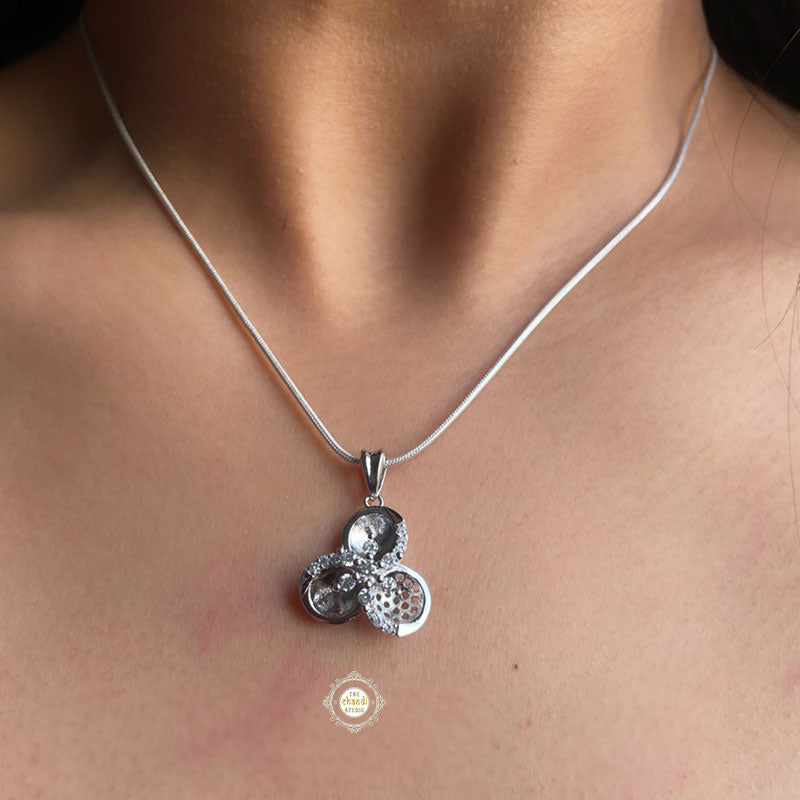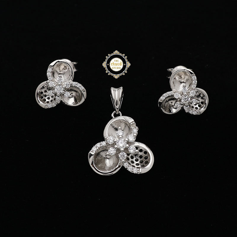 MATERIAL – STERLING SILVER 92.5 Nickle free Rhodium Polish for better finish Prices includes pendant and earrings