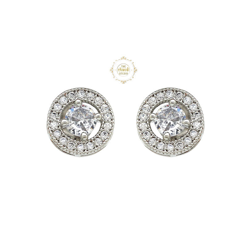 These sterling silver earrings are adorned with brilliantly cut sparkling Zircon stones. Manifested on a white-toned base, these earrings are perfect to enhance the beauty of young and adults who are working on self-love and self-expression. The pure white hue resonates with the peace of mind that your subconscious mind is attracting. The grace of these earrings with a unique clustered design makes them your instant favorite and insta-worthy pieces. Show off your regal essence with this beauty that is unequalled with the other earrings that you own. Pair them with any attire and be ready for any festive occasion in a jiffy. MATERIAL – STERLING SILVER 92.5