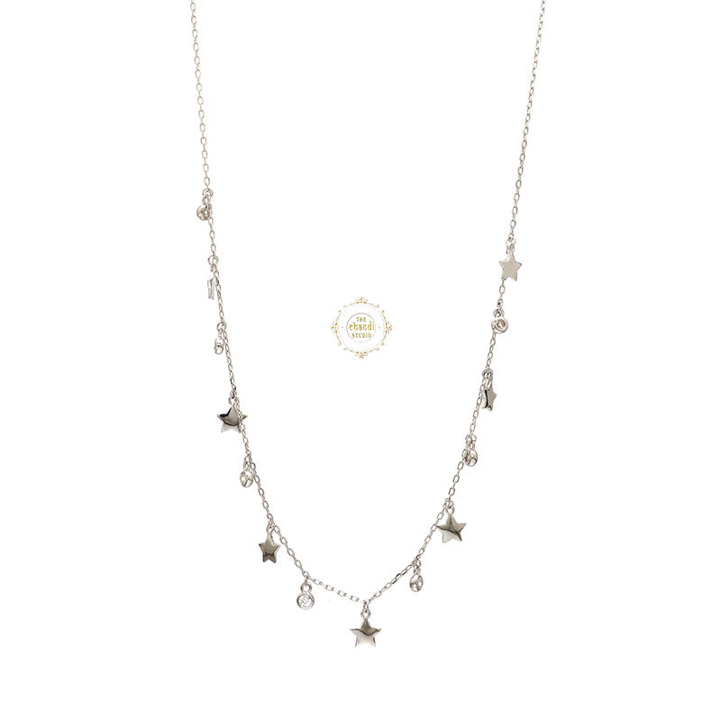 Introducing our exquisite new collection of sparkling necklaces crafted in sterling silver, each adorned with brilliantly cut Zircon stones. These necklaces are designed to celebrate love and self-love, making them a perfect choice for young adults and women embarking on their journeys of self-discovery. The pure white hue of these pieces resonates with the tranquility your subconscious mind seeks. The grace of each necklace, featuring a unique clustered design on top, is sure to capture your heart and become an instant favorite. These pieces are not only stunning but also worthy of any Instagram feed. Showcase your regal essence with this unparalleled beauty, setting it apart from any other necklaces you may own. Versatile enough to complement any attire, you'll be ready for any festive occasion in the blink of an eye.   MATERIAL – STERLING SILVER 92.5