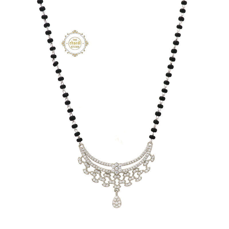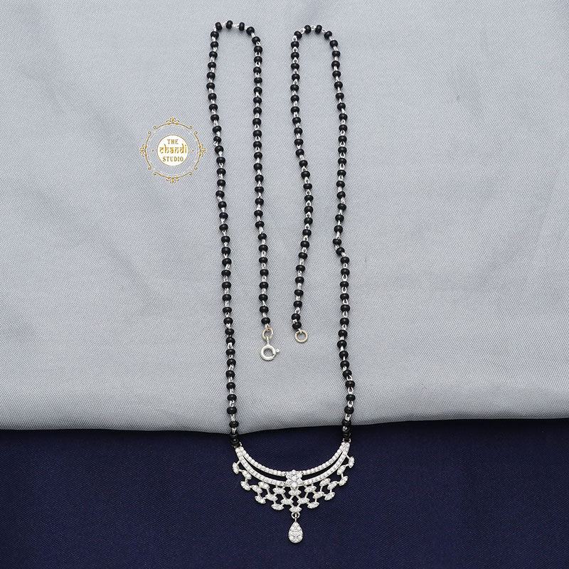 Sport a regal post-marital look by donning this Mangalsutra. This neckpiece just blends effortlessly with all outfits. It’s trendy, it’s stylish & can be worn 24*7 – be it with office formals, traditional attires or parties! MATERIAL : STERLING SILVER 92.5 LENGTH OF CHAIN – 22 inches SIZE OF PENDANT – 3.0 x 3.8 cm