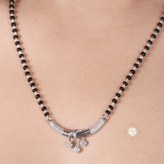 Elevate your post-marital elegance with the exquisite Sparkling Mangalsutra. This stunning neckpiece seamlessly complements any ensemble, ensuring you radiate regal charm at all times. Crafted to perfection, this Mangalsutra effortlessly combines trendiness with timeless style.