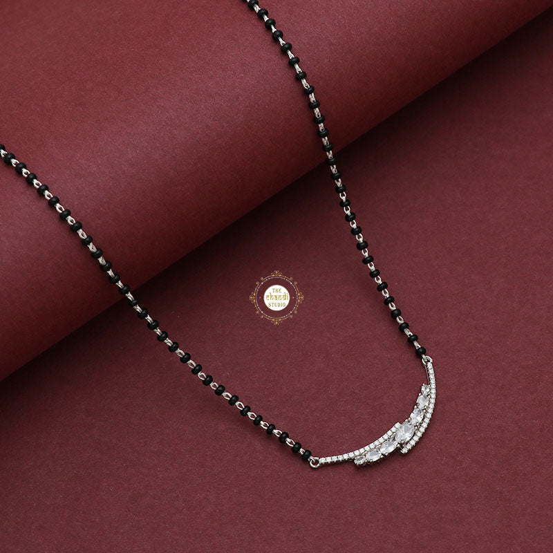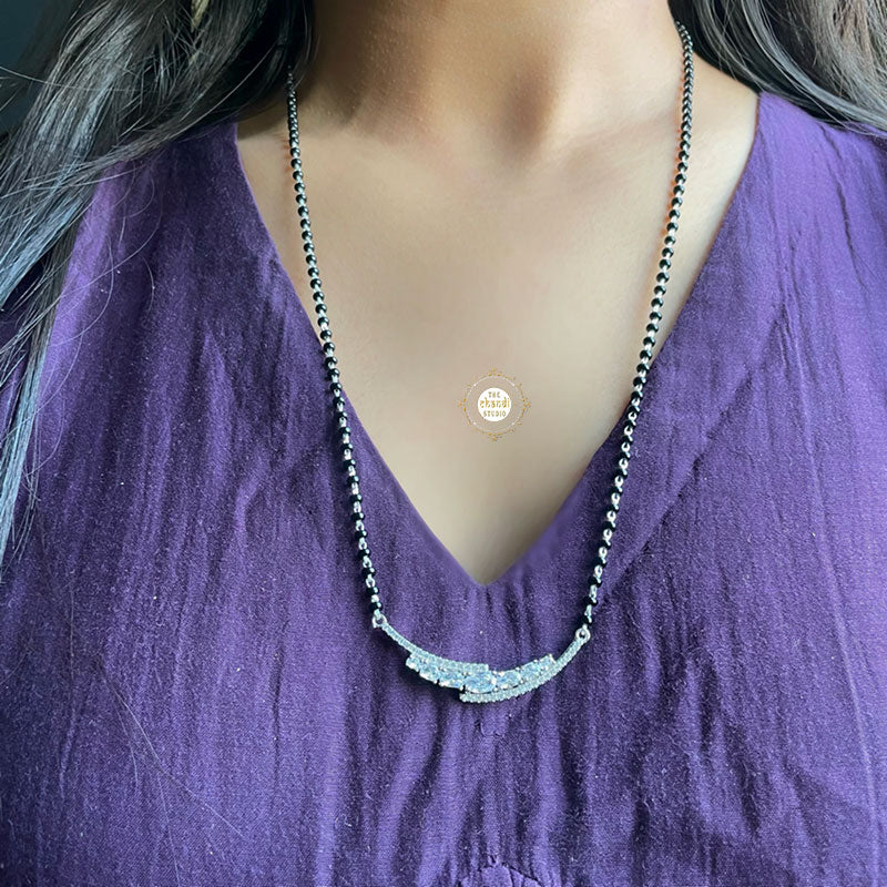 Elevate your post-marital elegance with the exquisite Sparkling Mangalsutra. This stunning neckpiece seamlessly complements any ensemble, ensuring you radiate regal charm at all times. Crafted to perfection, this Mangalsutra effortlessly combines trendiness with timeless style. Whether you're clad in office formals, traditional attire, or attending a glamorous soirée, this versatile piece is your perfect companion. Designed to be worn around the clock, the Sparkling Mangalsutra is more than just a symbol of marital bliss; it's a symbol of your enduring grace and fashion-forward sensibility. Add a touch of sparkle to every moment with this exquisite accessory. MATERIAL : STERLING SILVER 92.5