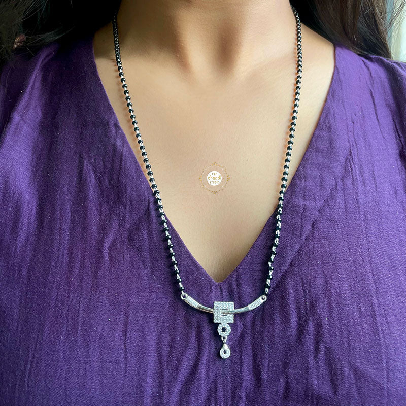 Elevate your post-marital elegance with the exquisite Sparkling Mangalsutra. This stunning neckpiece seamlessly complements any ensemble, ensuring you radiate regal charm at all times. Crafted to perfection, this Mangalsutra effortlessly combines trendiness with timeless style. Whether you're clad in office formals, traditional attire, or attending a glamorous soirée, this versatile piece is your perfect companion. Designed to be worn around the clock, the Sparkling Mangalsutra is more than just a symbol of marital bliss; it's a symbol of your enduring grace and fashion-forward sensibility. Add a touch of sparkle to every moment with this exquisite accessory. MATERIAL : STERLING SILVER 92.5