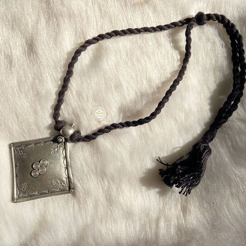 The Spiral Black Threaded Tale Necklace is a captivating blend of modern elegance and timeless craftsmanship. Crafted with meticulous attention to detail, this necklace features a mesmerizing spiral design that exudes sophistication and allure.