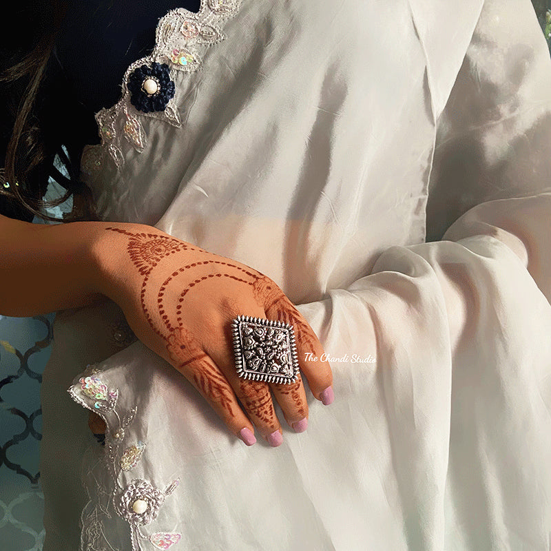 A ring that's made using multiple dye pieces, a ring that speaks for itself.