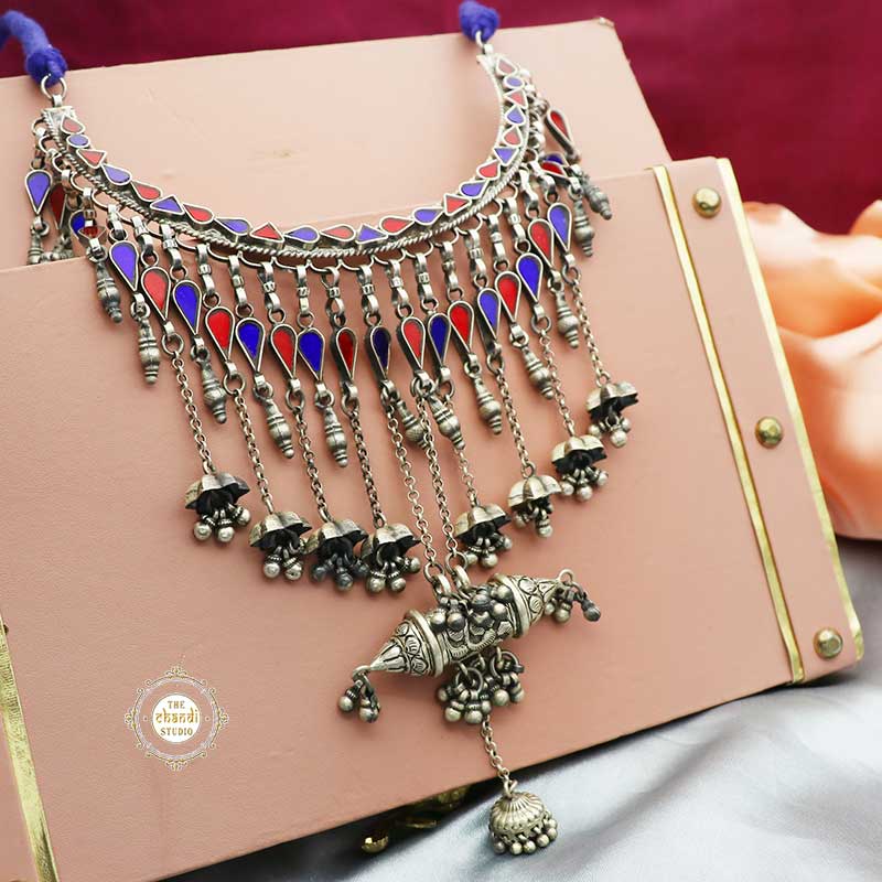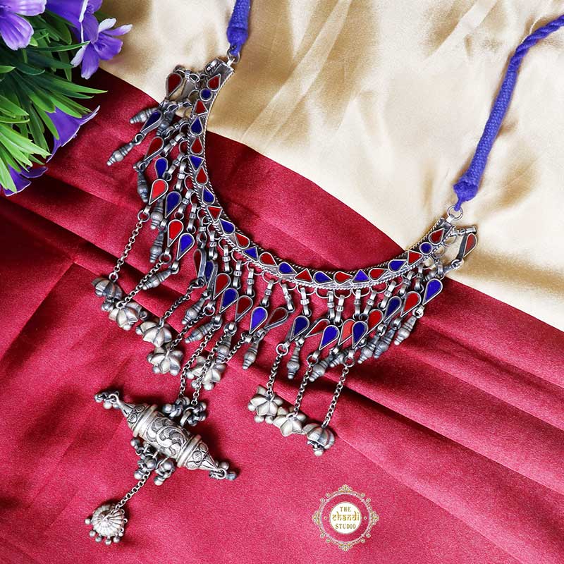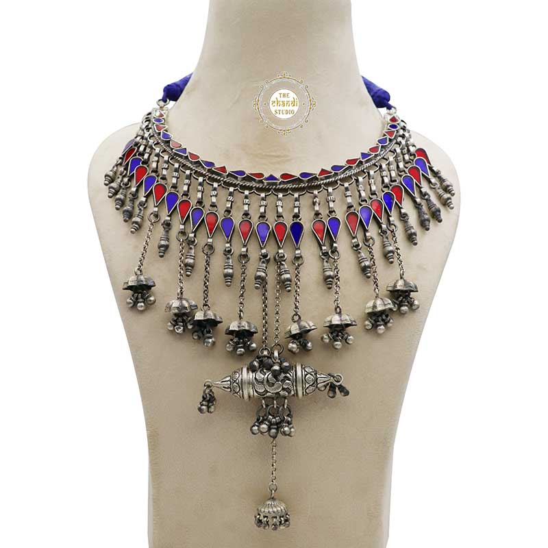 Sterling Silver Afghan Glass Necklace