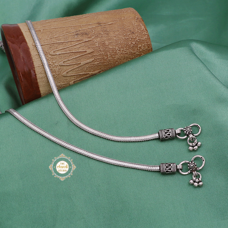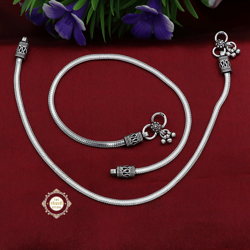 Looking for an elegant and stylish accessory to complete your look? Look no further than the Sterling Silver Anklet! Featuring a delicate and intricate chain design, this anklet is the perfect complement to your dresses, shorts, and sandals. Its lightweight and comfortable design make it perfect for all-day wear, while its durable construction ensures that it will withstand the test of time. The Sterling Silver Anklet is the perfect accessory to take your summer style to the next level. So why wait? Order your anklet today and get ready to turn heads wherever you go! MATERIAL : STERLING SILVER 92.5 LENGTH : 10.5 inches Price mentioned is for a Pair.