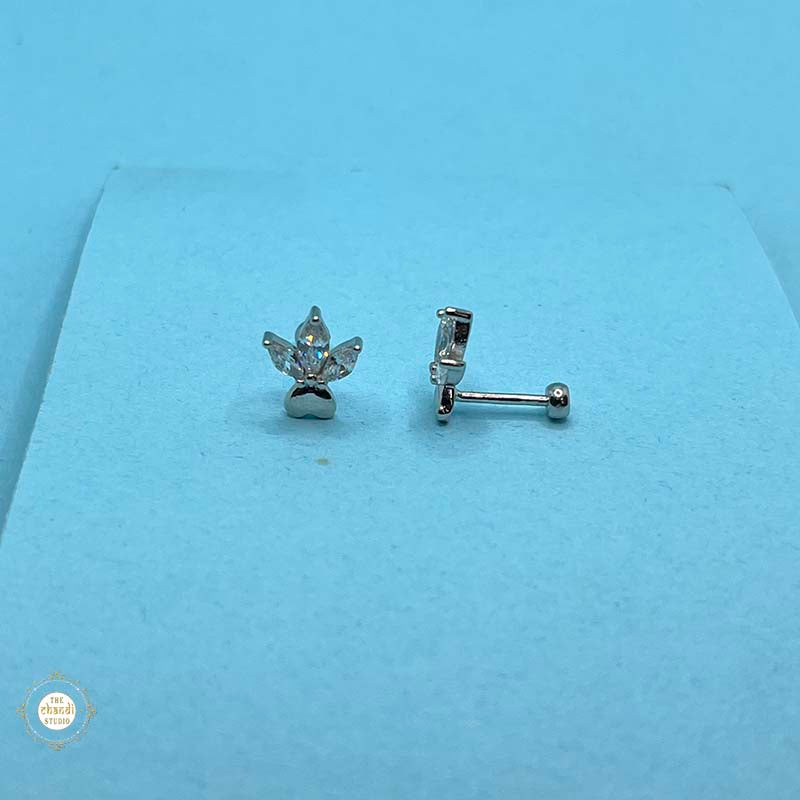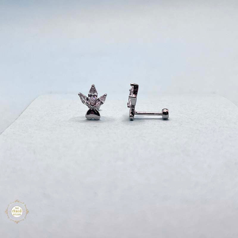 Silver Crystal Leaf Bud Stud