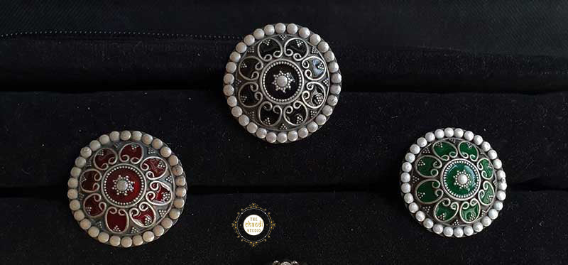 A ring with detailed meenakari art and fine  rawa work, making them look so irresistible SIZE ADJUSTABLE