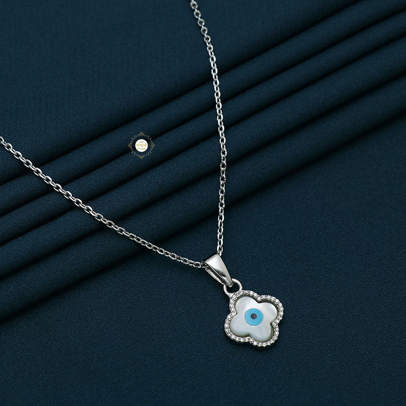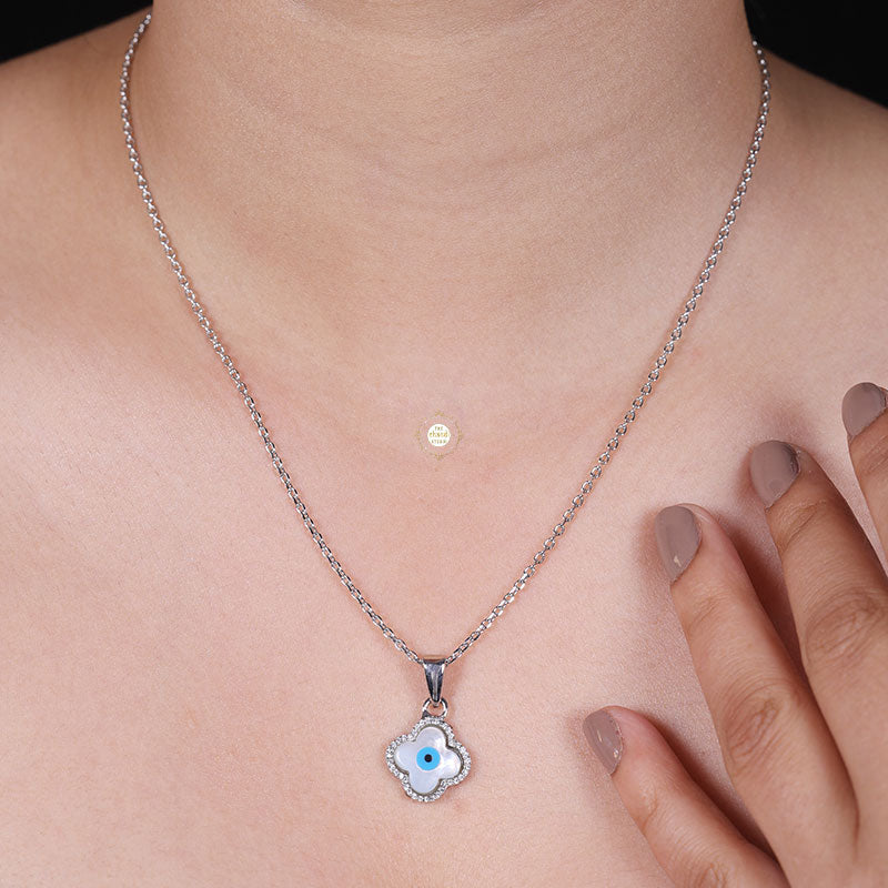 This stunning necklace features an intricately designed evil eye motif crafted from sterling silver, symbolizing warding off negative energy and bringing good luck. * Nickle free Rhodium Polish for better finish