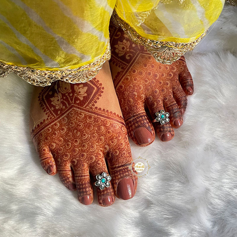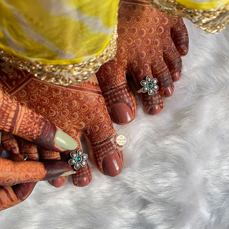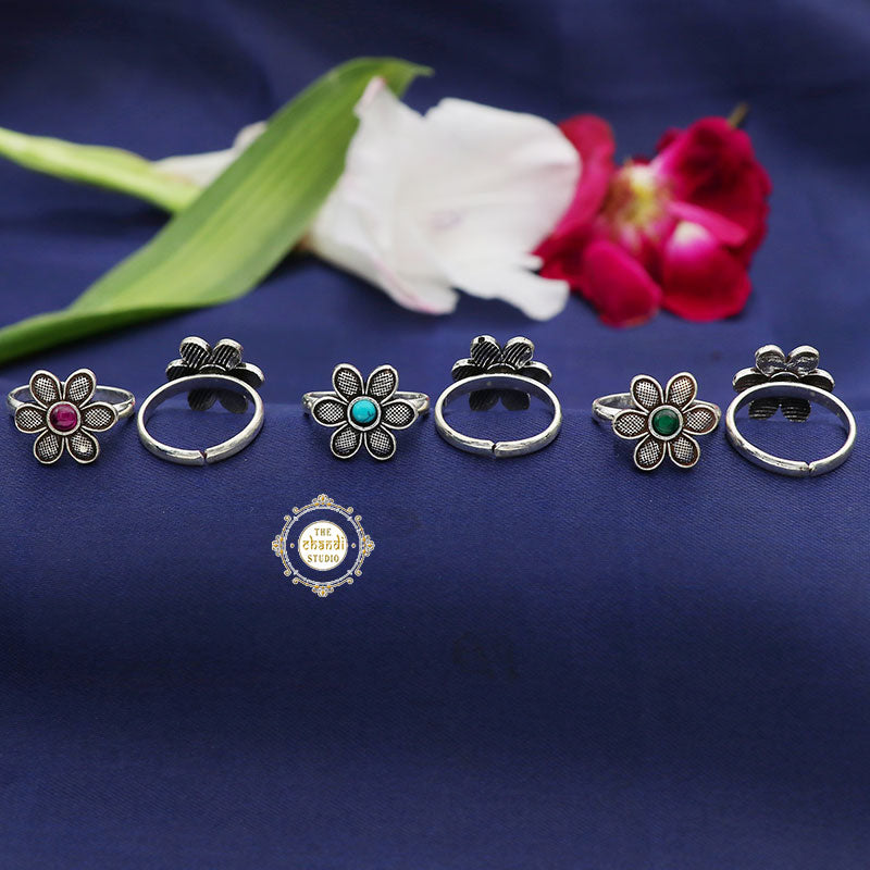 Light up your attire with these silver toe rings that are our tiny beauties Go festive, go gorgeous with these Adjustable Sterling Silver Flower Toe Ring. *Price mentioned is for a Pair. *Size - Adjustable