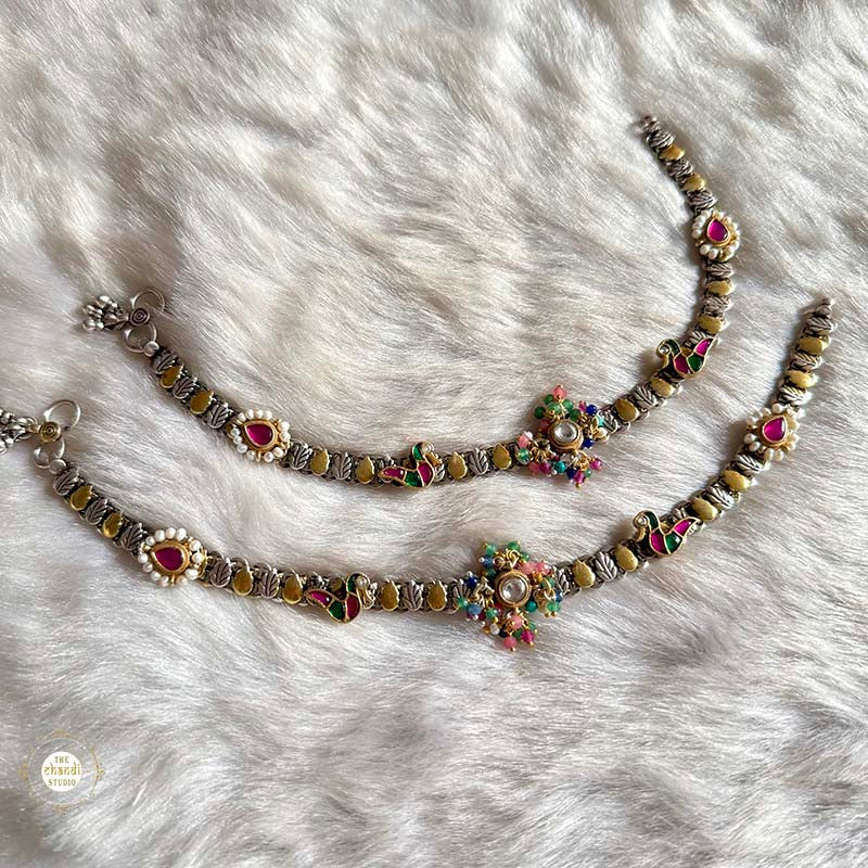 The Sterling Silver Jashn Fusion Gulbahar Anklet blends traditional floral charm with modern elegance. Crafted in pure silver, this lightweight anklet enhances festive style, offering lasting shine, comfort, and sophistication for every celebration.