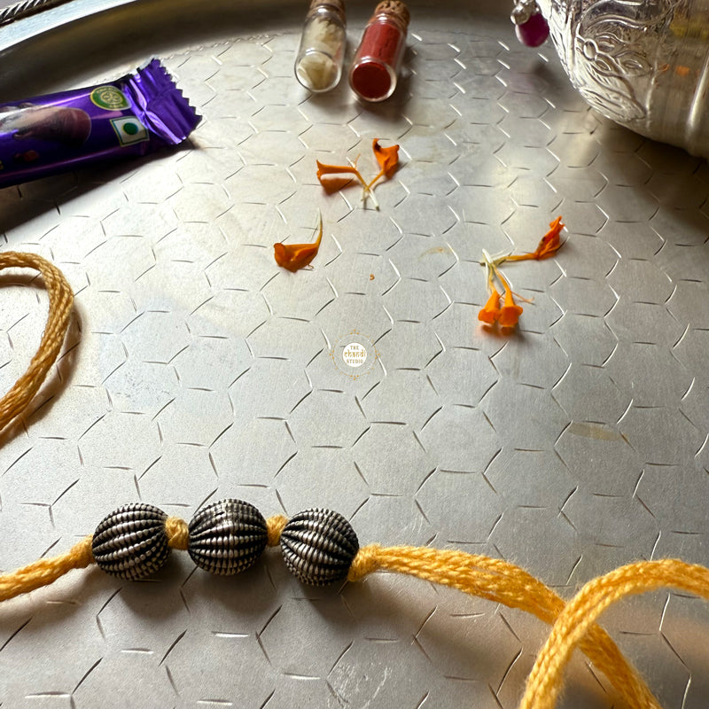 Celebrate the bond of love with the Sterling Silver Floral Grace Rakhi Handcrafted in 92.5 silver, it features an elegant design symbolizing purity, protection, and timeless sibling connection.