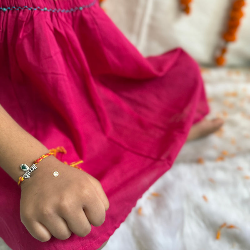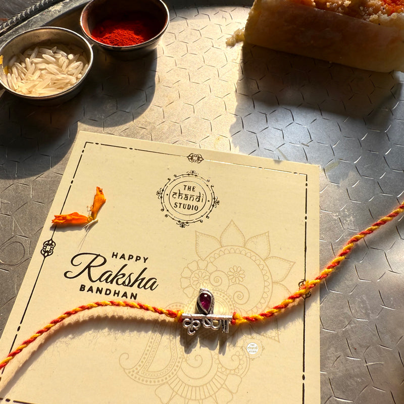 Celebrate the bond of love with the Sterling Silver Floral Grace Rakhi Handcrafted in 92.5 silver, it features an elegant design symbolizing purity, protection, and timeless sibling connection.
