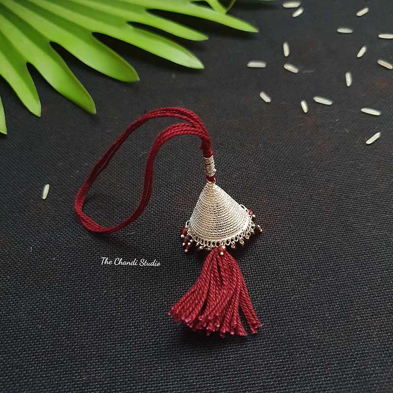 Sterling Silver Lumba Rakhi (Mehroon)