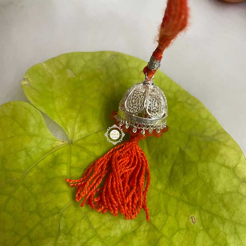 Celebrate the bond of love with the Sterling Silver Floral Grace Rakhi Handcrafted in 92.5 silver, it features an elegant design symbolizing purity, protection, and timeless sibling connection.