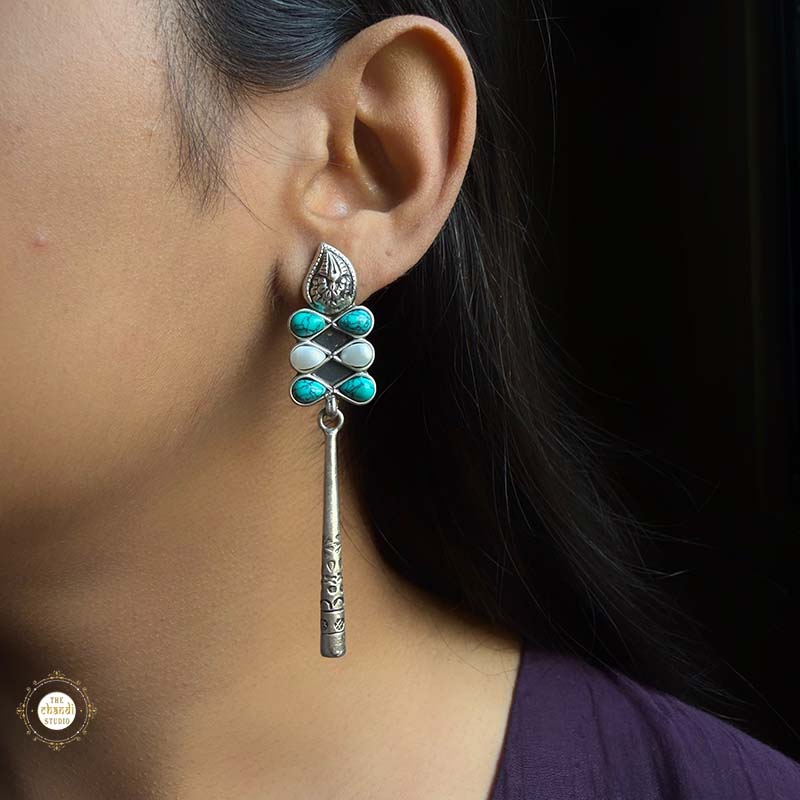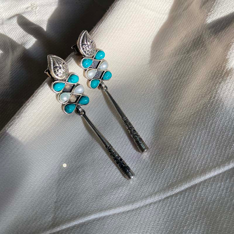 Sterling Silver Moonlit Dangle Earrings, handcrafted with black enamel and shimmering moonstone accents. Elegant long drops in timeless design, perfect for festive and everyday wear. Add sparkle and charm effortlessly