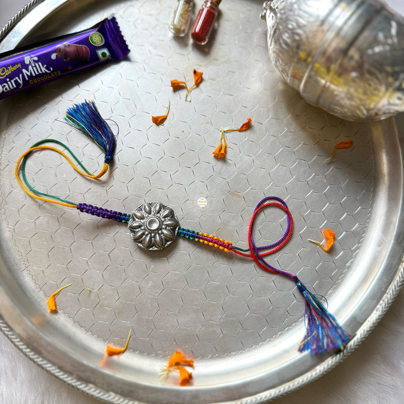 Celebrate the bond of love with the Sterling Silver Floral Grace Rakhi Handcrafted in 92.5 silver, it features an elegant design symbolizing purity, protection, and timeless sibling connection. *Every package comes with Roli, Chawal and a Dairy Milk.