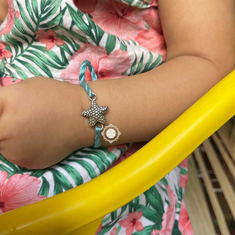 Celebrate the bond of love with the Sterling Silver Floral Grace Rakhi Handcrafted in 92.5 silver, it features an elegant design symbolizing purity, protection, and timeless sibling connection.