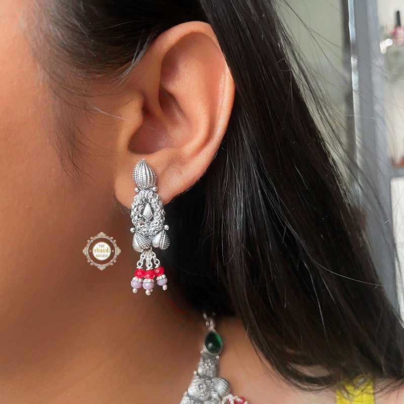 Earring : Length - 4 cm | Width - 1 cm *Price is inclusive of the earrings. MATERIAL : STERLING SILVER 92.5