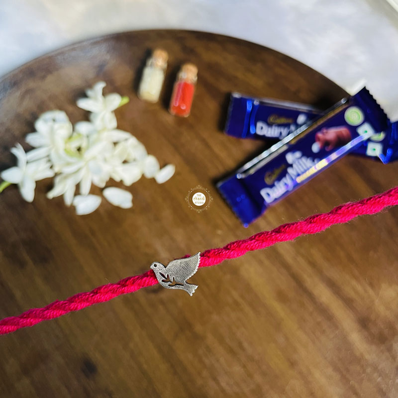 Celebrate the bond of love with the Sterling Silver Floral Grace Rakhi Handcrafted in 92.5 silver, it features an elegant design symbolizing purity, protection, and timeless sibling connection.