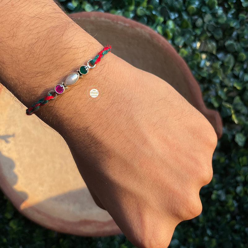 Celebrate the bond of love with the Sterling Silver Floral Grace Rakhi Handcrafted in 92.5 silver, it features an elegant design symbolizing purity, protection, and timeless sibling connection.
