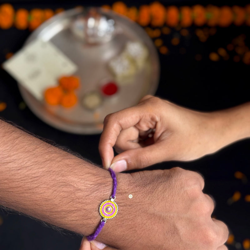 Celebrate the bond of love with the Sterling Silver Floral Grace Rakhi Handcrafted in 92.5 silver, it features an elegant design symbolizing purity, protection, and timeless sibling connection.